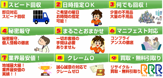 エリア限定&スピード回収&安心回収で不要品の回収を行っています。経営母体が産業廃棄物処理